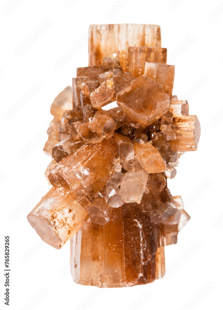 close up of sample of natural stone from geological collection - unpolished druse of brown aragonite crystals isolated on white background from Morocco