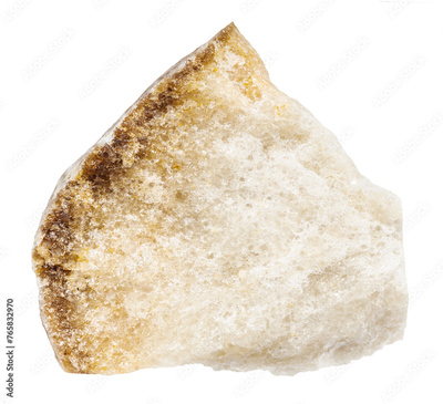 close up of sample of natural stone from geological collection - unpolished quartzite mineral isolated on white background from Karelia