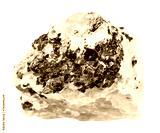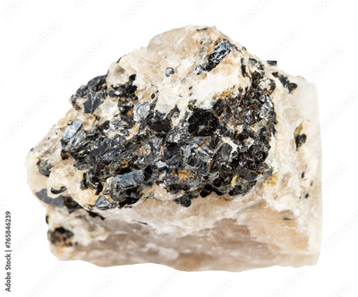 close up of sample of natural stone from geological collection - annite mica on unpolished cryolite mineral isolated on white background from Eastern Siberia