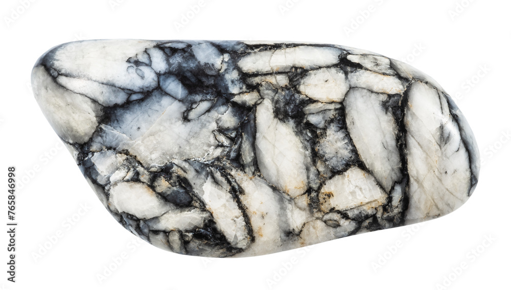 close up of sample of natural stone from geological collection - tumbled pinolite mineral isolated on white background from Austria