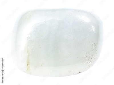 close up of sample of natural stone from geological collection - tumbled colorless calcite mineral isolated on white background from Argentina