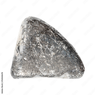 close up of sample of natural stone from geological collection - polished skutterudite mineral isolated on white background from Tuva