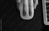 Business manager hand using on white mouse with clicking and its apps for customer support, including email, chat, and communication.
