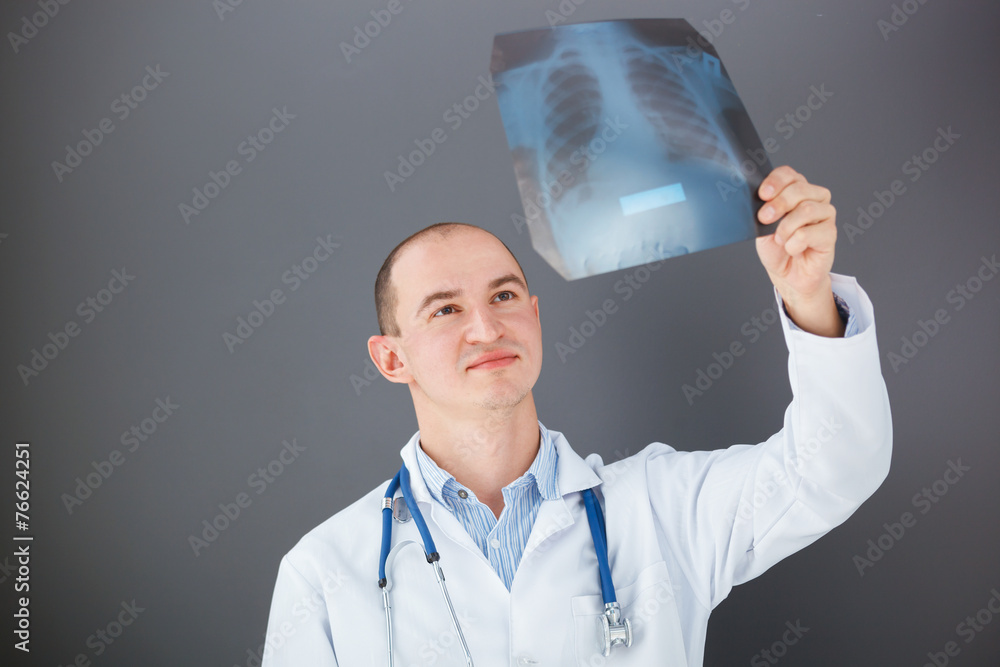 Young doctor looking at xray.