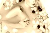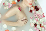 Beautiful sexy woman takes bath rose candles Valentine's day spa