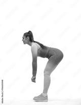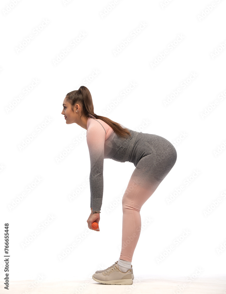 smiling body positive woman performing fitness exercises in full body isolated