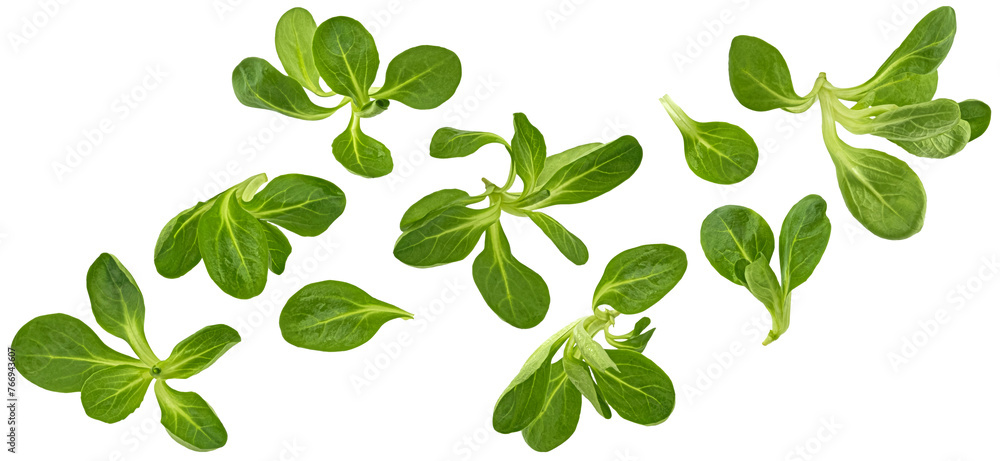 Fresh lamb lettuce, corn salad leaves isolated on white background