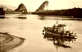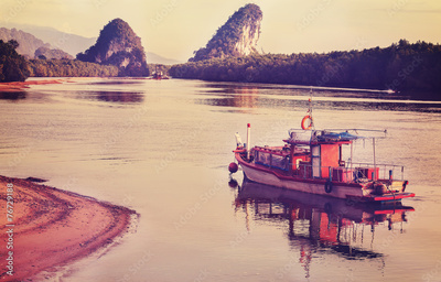 Retro vintage filtered picture of a wooden boat, Krabi, Thailand.