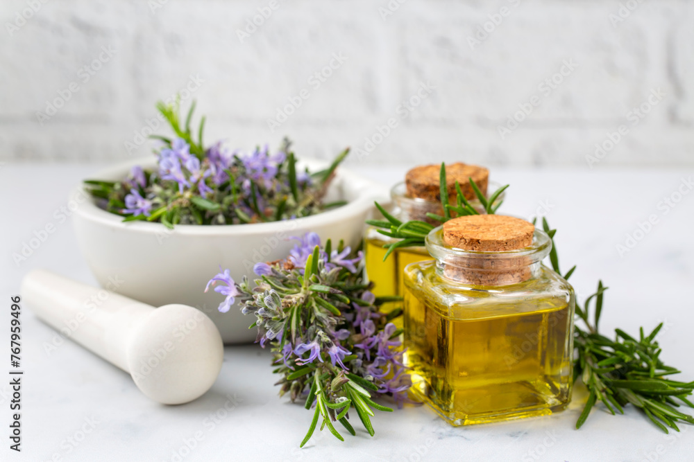 Fresh organic rosemary with essential oil