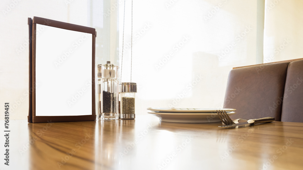 Mock up menu frame on Table in restaurant cafe shop
