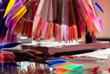 Samples of nail polish of different colors and shades applied to the tester plate. The stand featured many different shades of nail polish, showing shoppers a wide range of options.