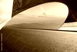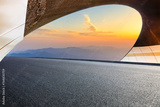 Asphalt highway and tunnel exit with mountain at sunset