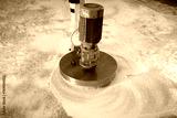 Cleaning service concept. carpet chemical foaming and cleaning with disk machine.