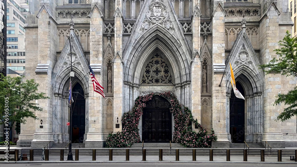 The entrance to St. Patrick's Cathedral is a Catholic cathedral located in the heart of New York City in the USA.