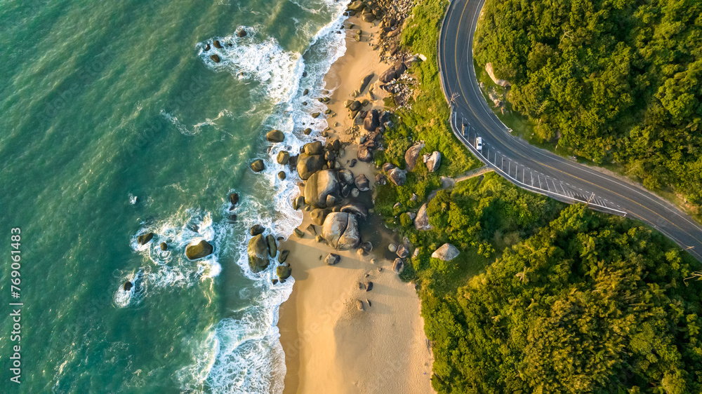 Balneario Camboriu in Santa Catarina. Taquaras Beach and Laranjeiras Beach in Balneario Camboriu. Aerial view in landscape.