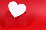 Heart shape red valentine card or gift tag in envelope isolated plain background photo