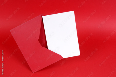 Valentine card love letter or gift tag in red envelope isolated plain background photo