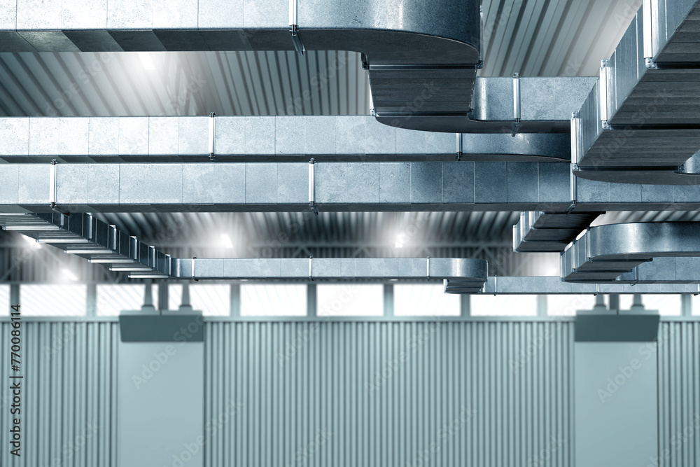 Modern Industrial Air Ventilation System Within a Large Metallic Structure Facility 3d image