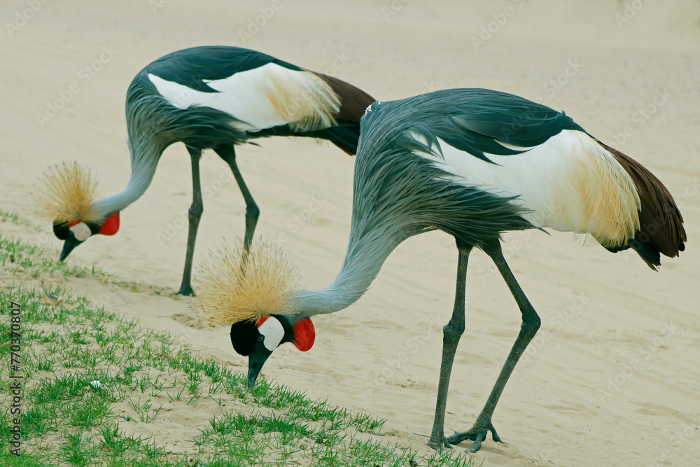 grey crowned crane, also known as the African crowned crane, golden crested crane in close up