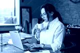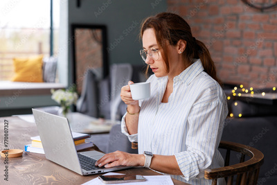 Young freelancer businesswoman working from home. Businesswoman using laptop in home office