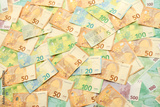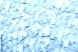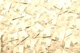 Many european euro money bills. Lot of banknotes of european union currency close up