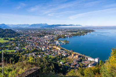 City of Bregenz am Bodensee (Lake of Constanze), toward the Rhine Delta and Swiss Mountains, State of Vorarlberg, Austria