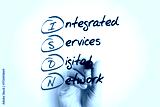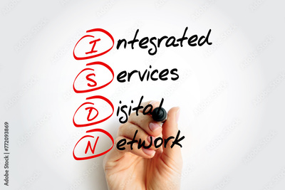 ISDN Integrated Services Digital Network - set of communication standards for simultaneous digital transmission of data over the digitalised circuits of telephone network, acronym text with marker