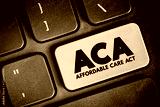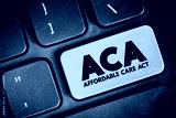 ACA Affordable Care Act - comprehensive health insurance reforms and tax provisions, acronym text concept button on keyboard
