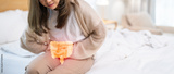 Woman sick unhappy holding belly stomach with suffering from stomach ache pain, monthly period, gastritis, gastroenteritis, food poisoning, diarrhea, intestinal inflammation, Woman healthcare
