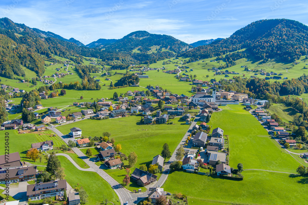 Drone Photo of the Village of Hittisau and the Bregenzerwald, State of Vorarlberg, Austria