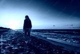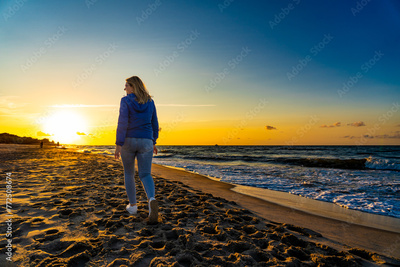 Beautiful mid adult woman walking on beach at sunset