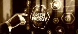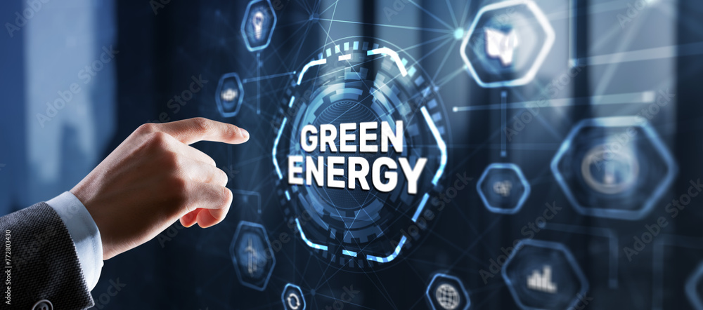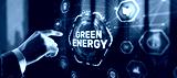 Businessman clicks Green eco energy icons. Reducing environmental risks