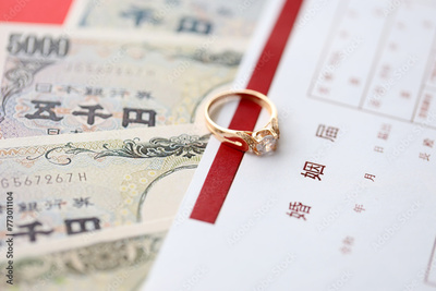 Japanese marriage registration blank document on table close up