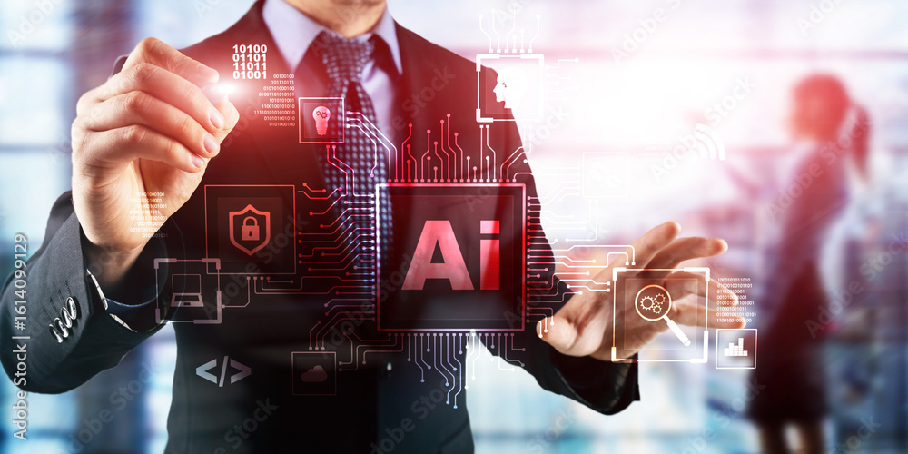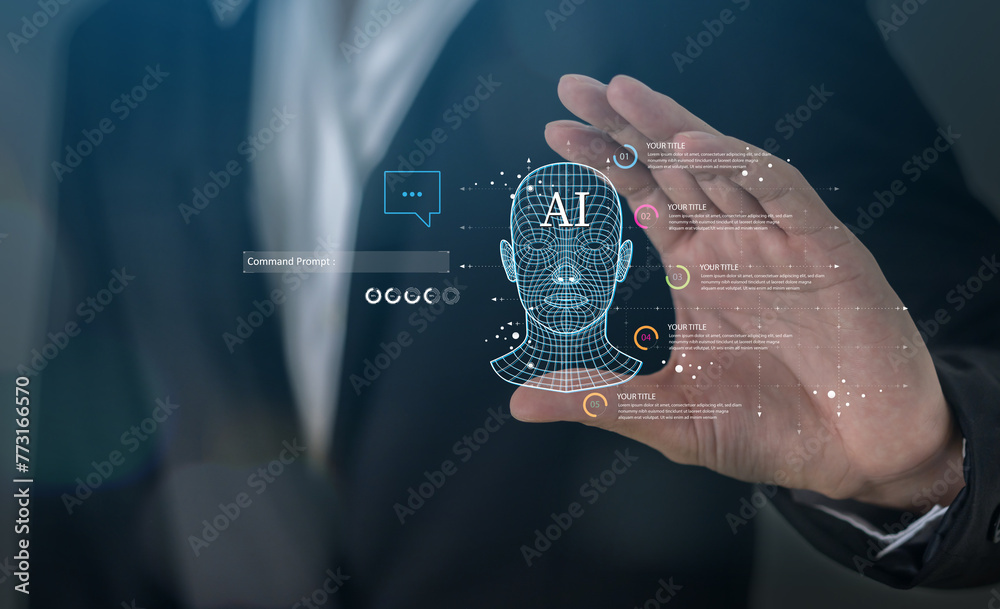 Concept of Artificial intelligence, AI robot, brain, idea, development, think, futuristic technology transformation, science, businessman holding AI brain, machine learning technology development