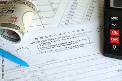 Japanese tax form 4 - Extension of time for withholding of tax on dividends with respect to foreign depositary receipt. Application form for income tax convention