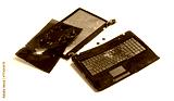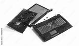 Old broken laptop isolated on white background