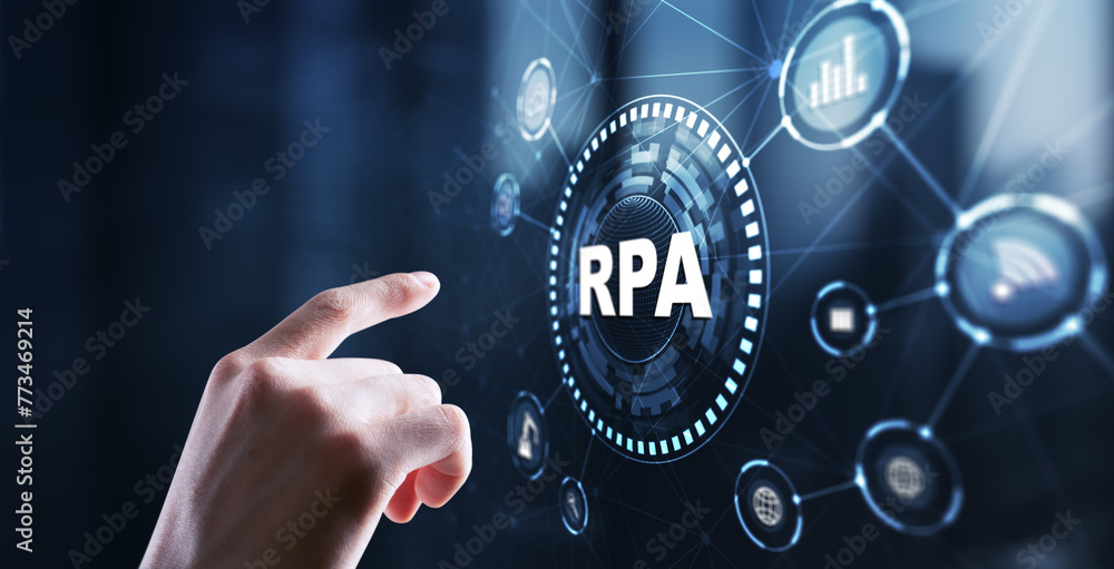 RPA Robotic Process Automation system. Artificial intelligence concept