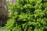 Euonymus japonica bush with yellow and green leaves. Evergreen plant called Japanese spindle tree