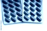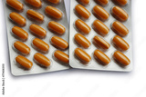 Pharmaceutical medicine capsules isolated on white background. Orange pills in blister packaging