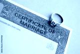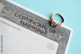 Canadian Certificate of registration of marriage blank document and wedding ring close up