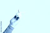Woman's hand holding a cigarette. The concept of the dangers of smoking