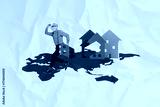 Composite photo collage of happy old agent run hold piece house property real estate agent map move travel isolated on painted background