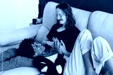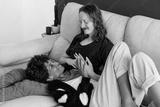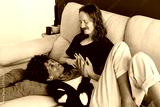 Cozy couple enjoying a serene moment together on the sofa