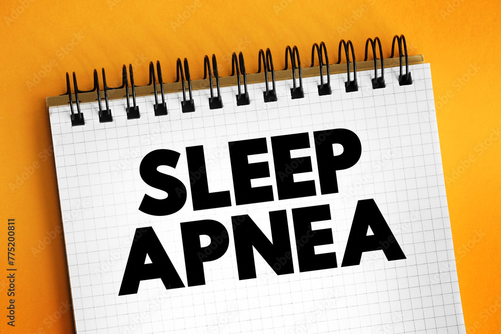 Sleep Apnea - condition in which your breathing stops and restarts many times while you sleep, text concept on notepad