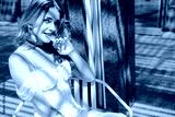 Beautiful blonde Italian girl, outdoors in a square in Milan