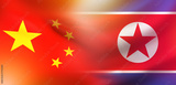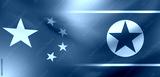 Flags of China and north Korea. National symbols. Cooperation between PRC and DPRK. State symbol of China. North Korea political banner. Diplomatic relations between China and north Korea. 3d image