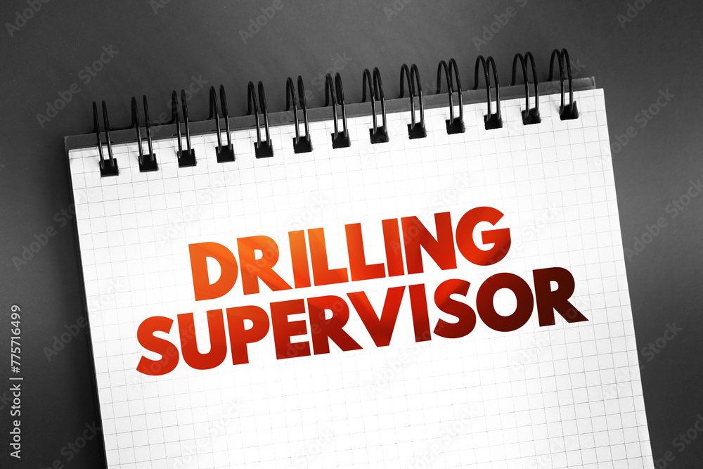 Drilling Supervisor - directs and controls all daily operational activities to drilling, text on notepad concept background