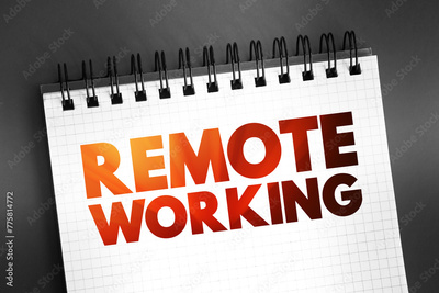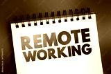 Remote Working - employment arrangement in which employees do not commute to a central place of work, such as an office building, warehouse, or retail store, text on notepad concept background