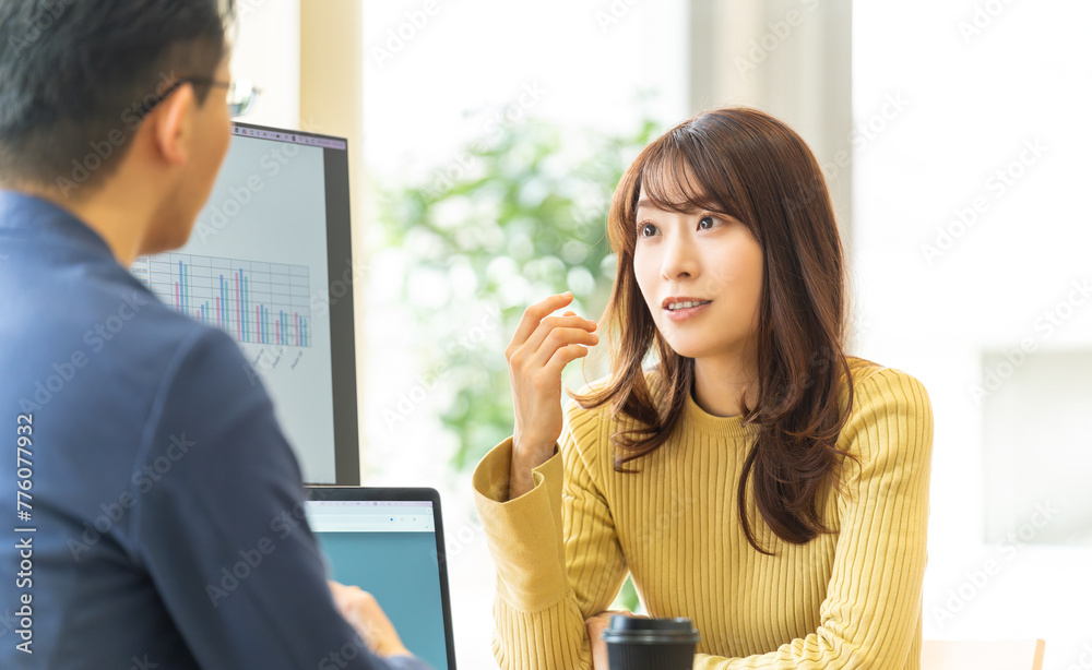 打ち合わせをする男女のビジネスマン