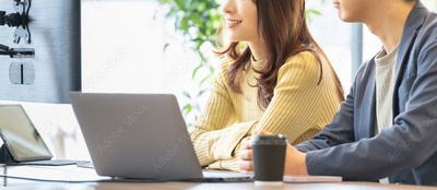 パソコンを使う男女のビジネスマン